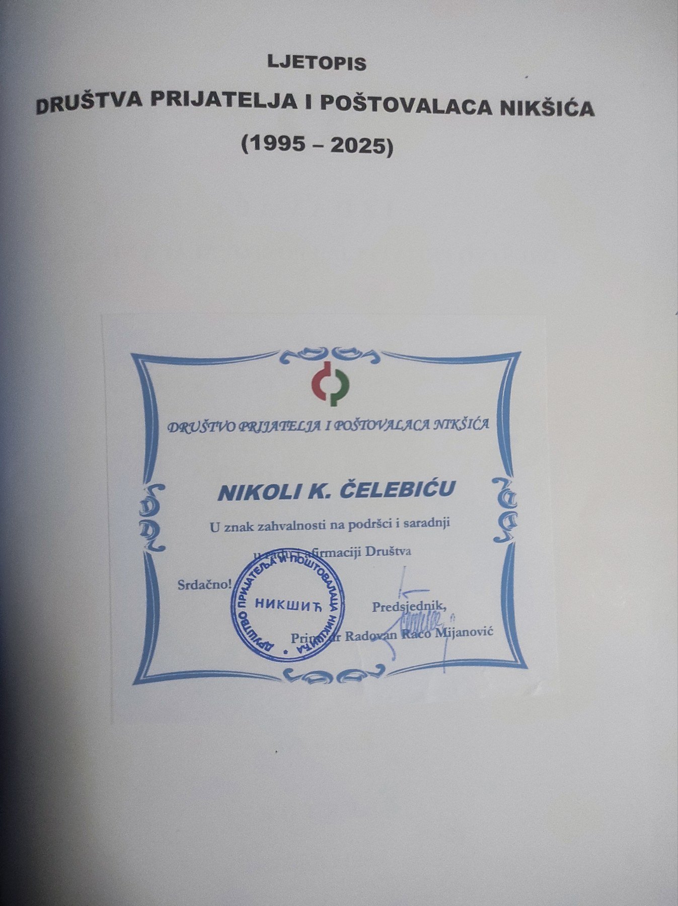 Posebnu zahvalnost dugujem Društvu prijatelja i poštovalaca Nikšića,