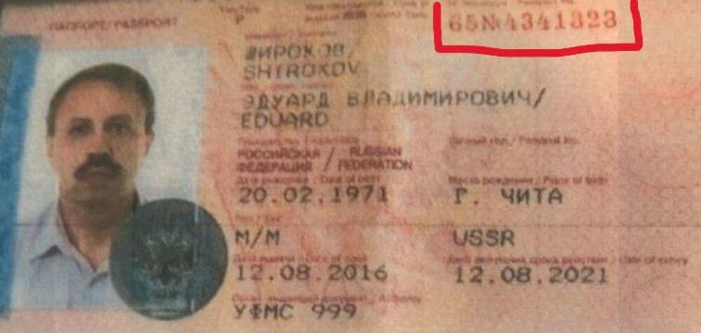brojem lažnog pasoša na ime Eduard Širokov, sa kojim je on ulazio u Srbiju