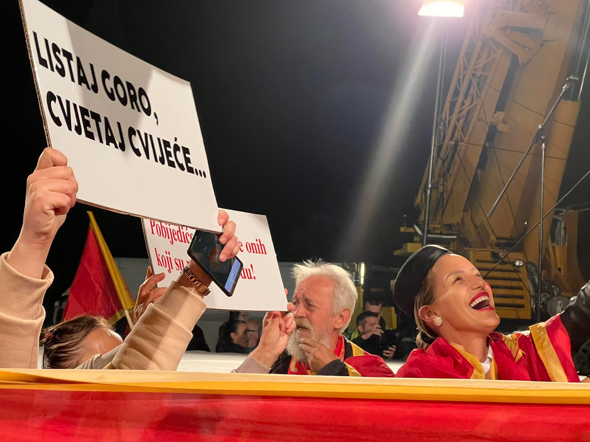 “Posebno želim da pozdravim prijatelje, poznanike i sve one koji su mi rekli, “mislimo mi isto kao i ti, ali kako da izađem… Pušti đavola…oboriće me na ispitu, pušti đavola dobiću otkaz…” želim da im poručim da od večeras više nema izgovora. A nas ima i za vas što sjedite doma”, naglasio je.