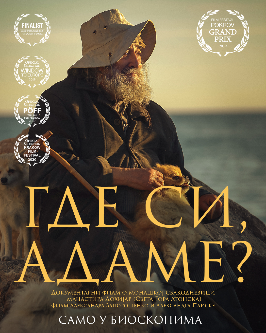Dokumentarni film Gdje si, Adame donosi na veliko platno atmosferu monaškog života na Svetoj Gori. Prikazujući život jednog od svetogroskih manastira iznutra, uz očuvanje atmosfere i autentičnosti, kroz razgovor sa glavnim junakom filma, igumanom atonskog manastira Grigorijom, ali i sa drugim monasima, autori okom kamere bilježe svakodnevicu monaške zajednice koja na sebe preuzima teškoće, trud i trpljenje života u ime Hristovo i sledovanje monaškom idealu.