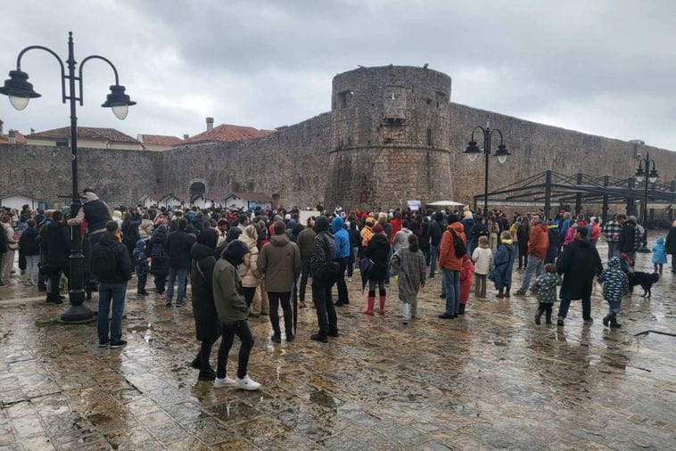 Više stotina njih okupilo se danas kod zidina starog grada u Budvi.