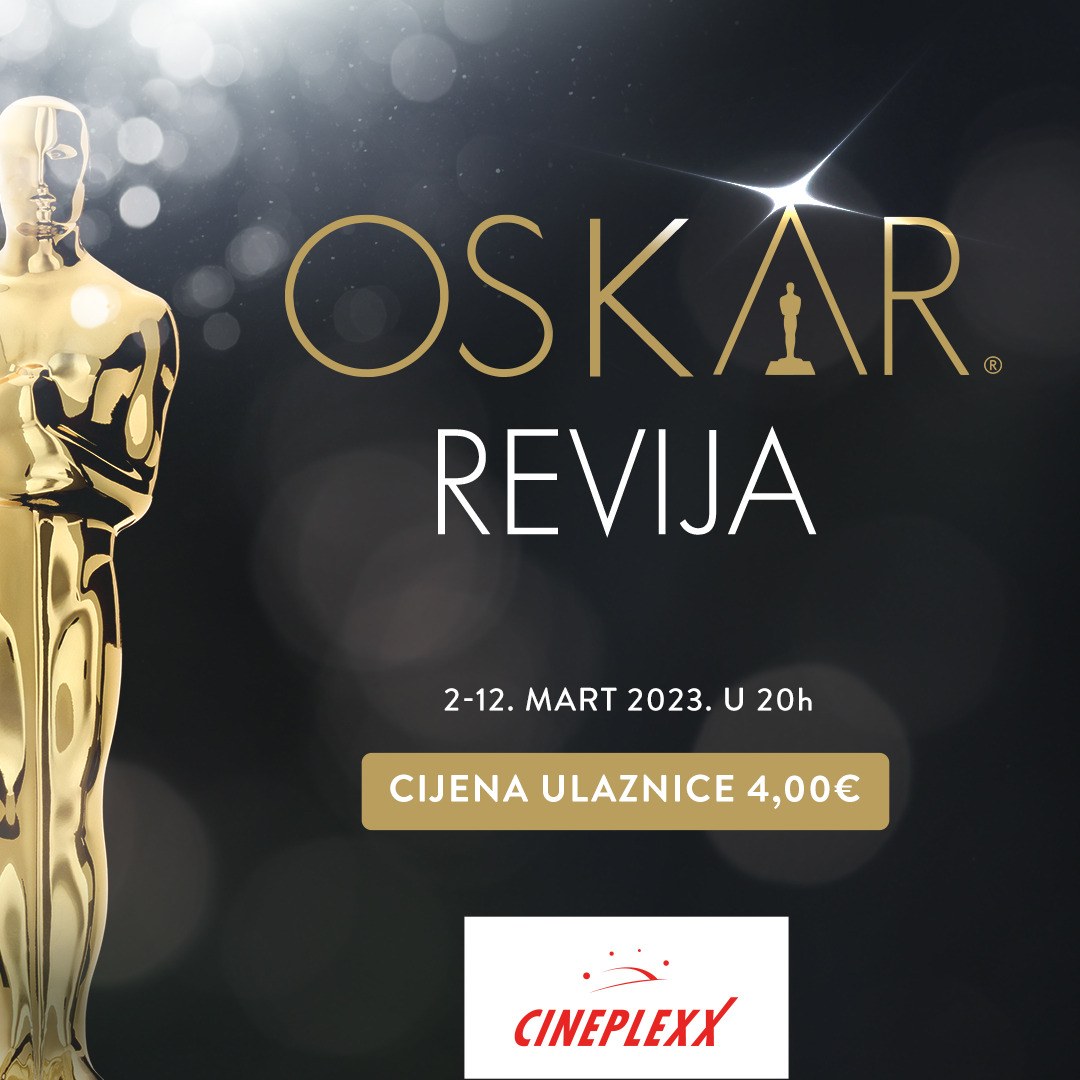 Na velikom platnu bioskopa Cineplexx pogledajte filmove koji su se našli u trci za prestižnu nagradu Oskar! Na program revije naći će se sljedeća ostvarenja Sve u isto vrijeme, Avatar: Put vode, Elvis, Fabelmanovi, Tar, Top Gan: Maverik, Trougao tuge, Kit, Crni Panter: Vakanda zauvijek, kao i dva animirana filma Pocrvenjela Panda i Mačak u čizmama: Poslednja želja.