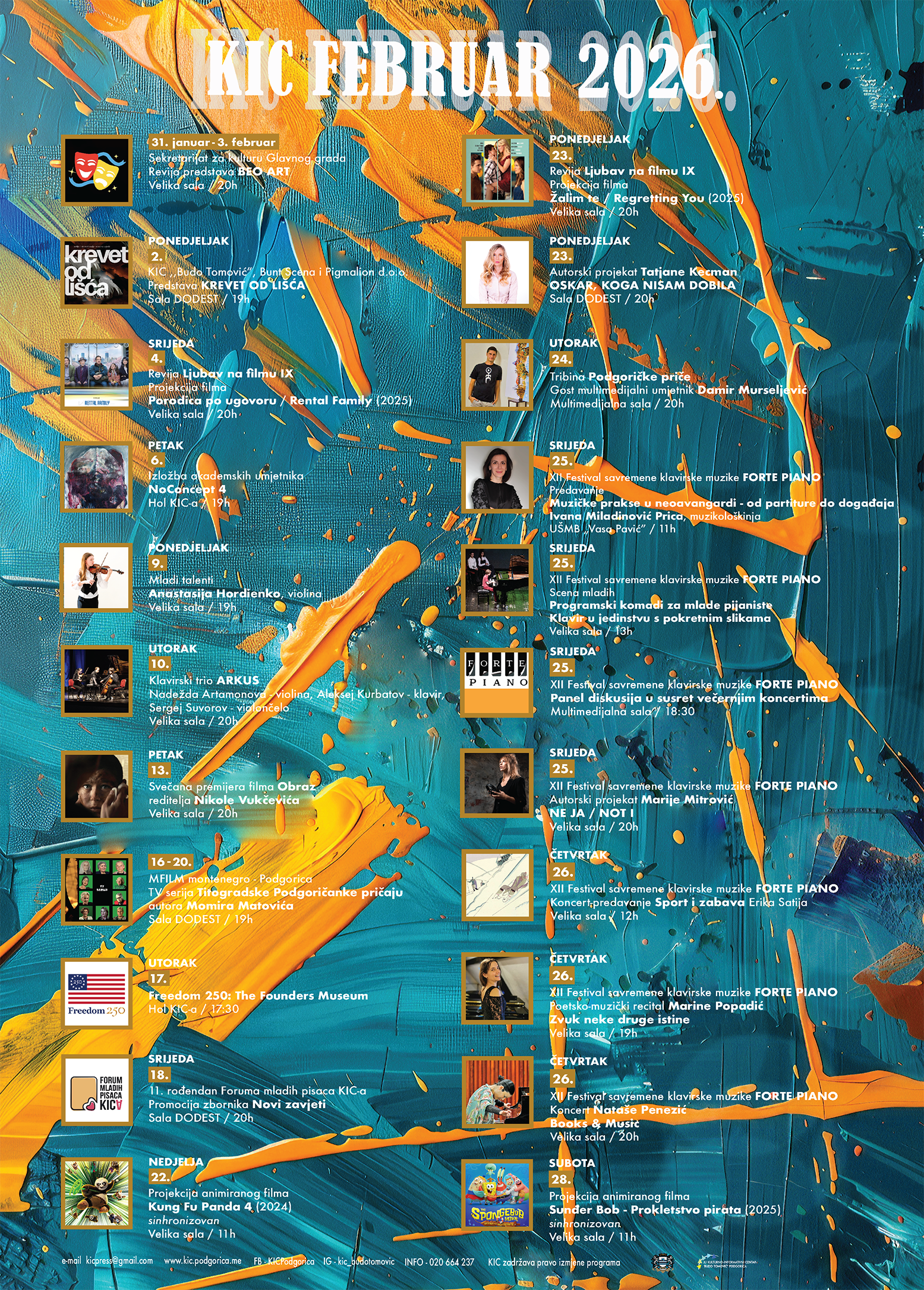 Svečana premijera filma „Obraz“, XII Forte piano, 11. rođendan Foruma mladih pisaca KIC-a…