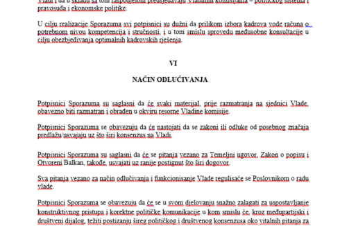 Kada je riječ o načinu odlučivanja vlade, on je naveo da je za usvajanje odluka potreban što šiti konsenzus na vladi, dok je u dokumentu opozicije pisalo da se odluke donose konsenzusom.