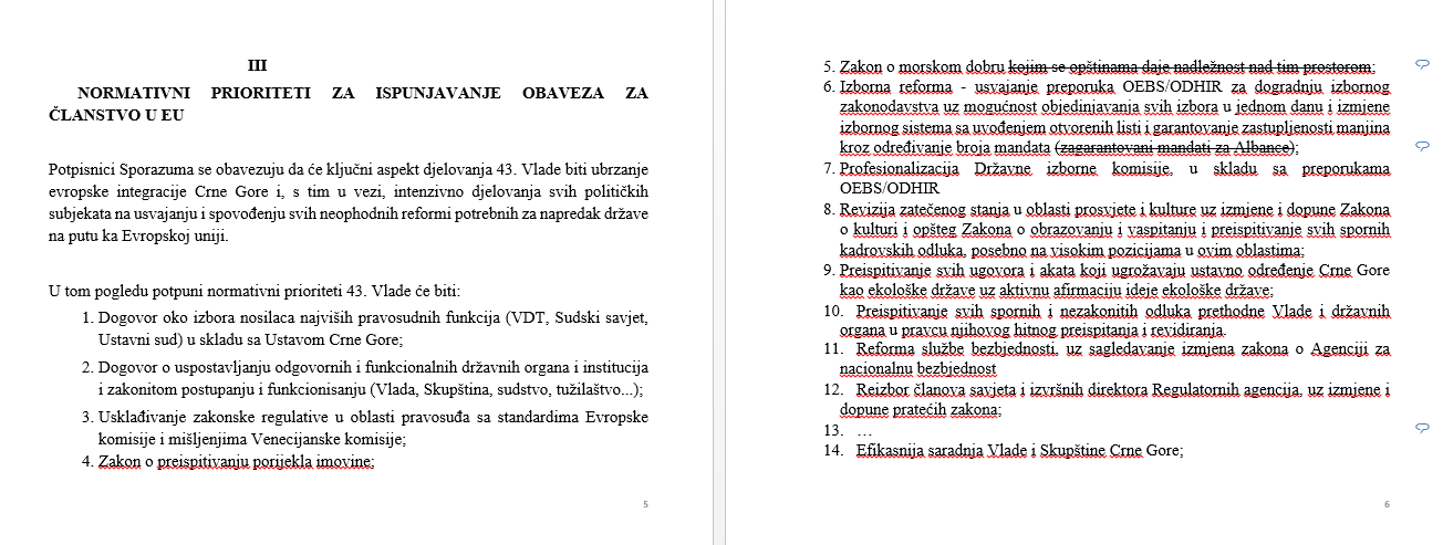 Razlike su i u dijelu u kojem se nabrajaju “Normativni prioriteti” 43. Vlade.