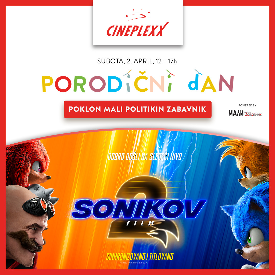 PORODIČNI DAN SONIK – Subota, 2. april, od 12 do 17 časova. Za sve mališane pripremili smo poklon mali Politikin zabavnik, crtanje po licu u periodu od 12 do 14 časova i kreativnu radionicu inspirisanu glavnim junakom filma od 12 do 17 časova.