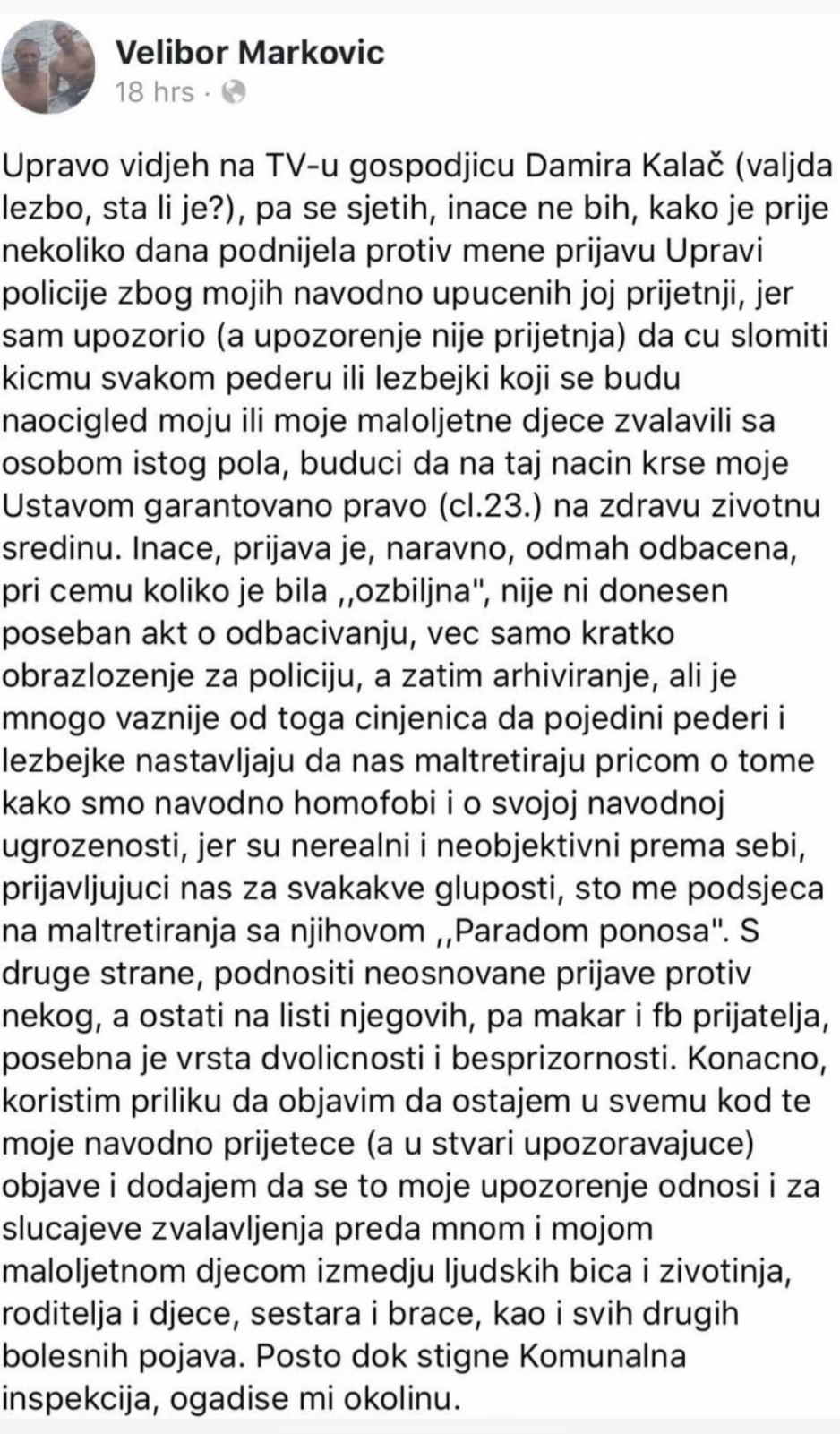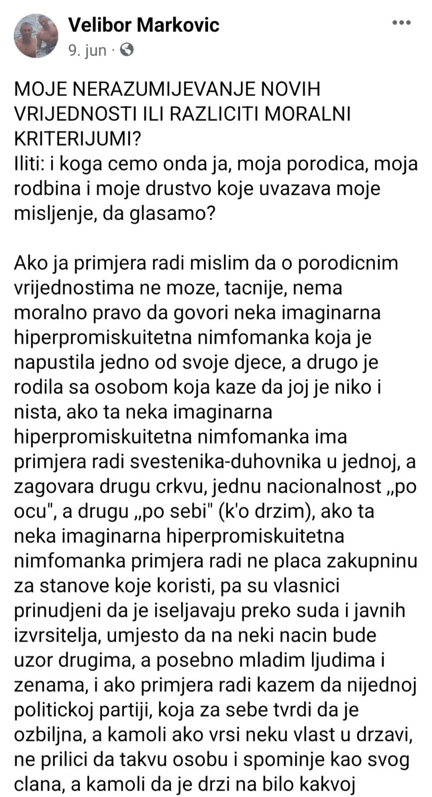“Gospodin Marković je otvoreno isticao i iskazivao mizoginiju i homofobiju i uvjereni smo da ga to isključuje iz mogućnosti imenovanja u zvanična vladina radna tijela kojima se navodno kane riješiti ozbiljni društveni problemi i pomoći prevazilaženje nerazumijevanja i podjela”, dodaju u saopštenju.